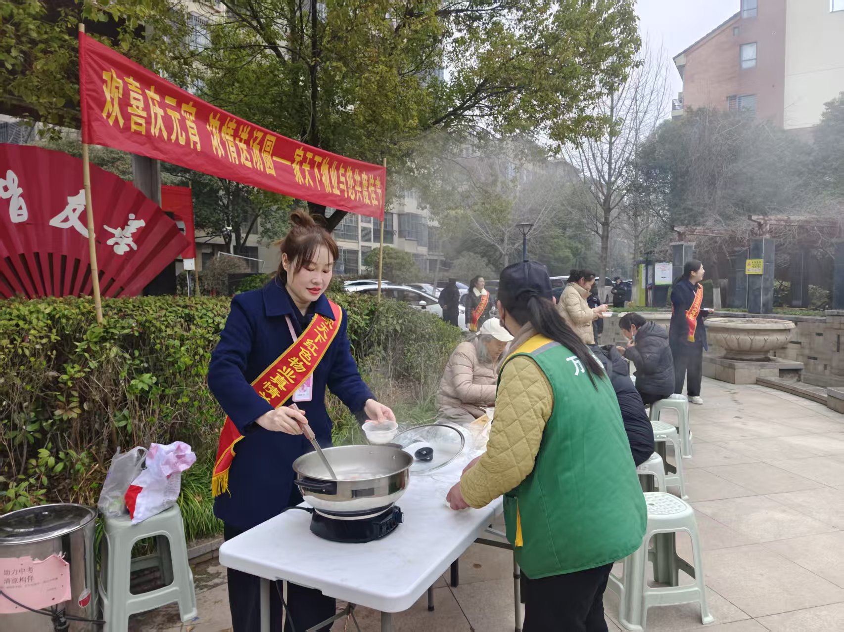 套圈活动现场,大家有序排队、凝神投掷,现场加油声、欢笑声不断,在愉快互动中进一步增进了邻里情谊;猜灯谜环节,各类趣味灯谜吸引大家踊跃参与,他们互相探讨、抵掌而谈,在沉浸式体验中感受传统节日魅力;送汤圆活动,退役军人服务站联合物业公司,将一碗碗热气腾腾的汤圆送到现场维护秩序的保安、环卫工人手中,香甜软糯的汤圆承载着团圆祝福,让大家真切感受到社区与退役军人服务站的暖心关怀。