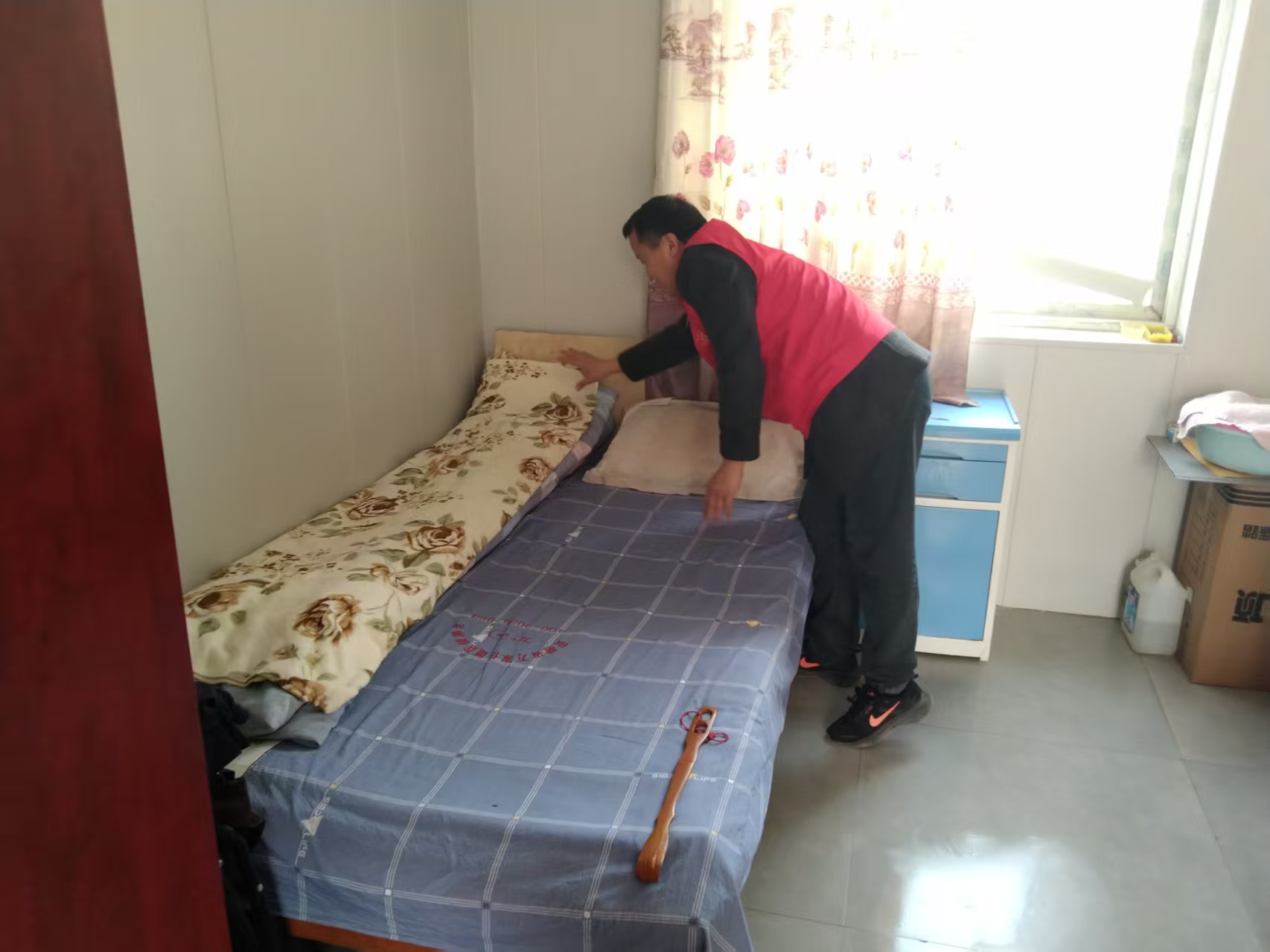 敬老爱老暖人心,志愿服务传温情。玄庙镇退役军人“红耀江淮”志愿服务队走进当地敬老院,开展关爱老人志愿服务。志愿者们身着红色马甲,有的清扫院内道路、整理庭院杂物,有的走进老人房间帮忙整理被褥、擦拭家具,用贴心行动为老人营造整洁舒适的生活环境。现场氛围温馨融洽,老人们的笑容与志愿者的热情交织,传递出浓浓的尊老爱老之情,展现了退役军人服务社会、温暖民心的志愿风采。