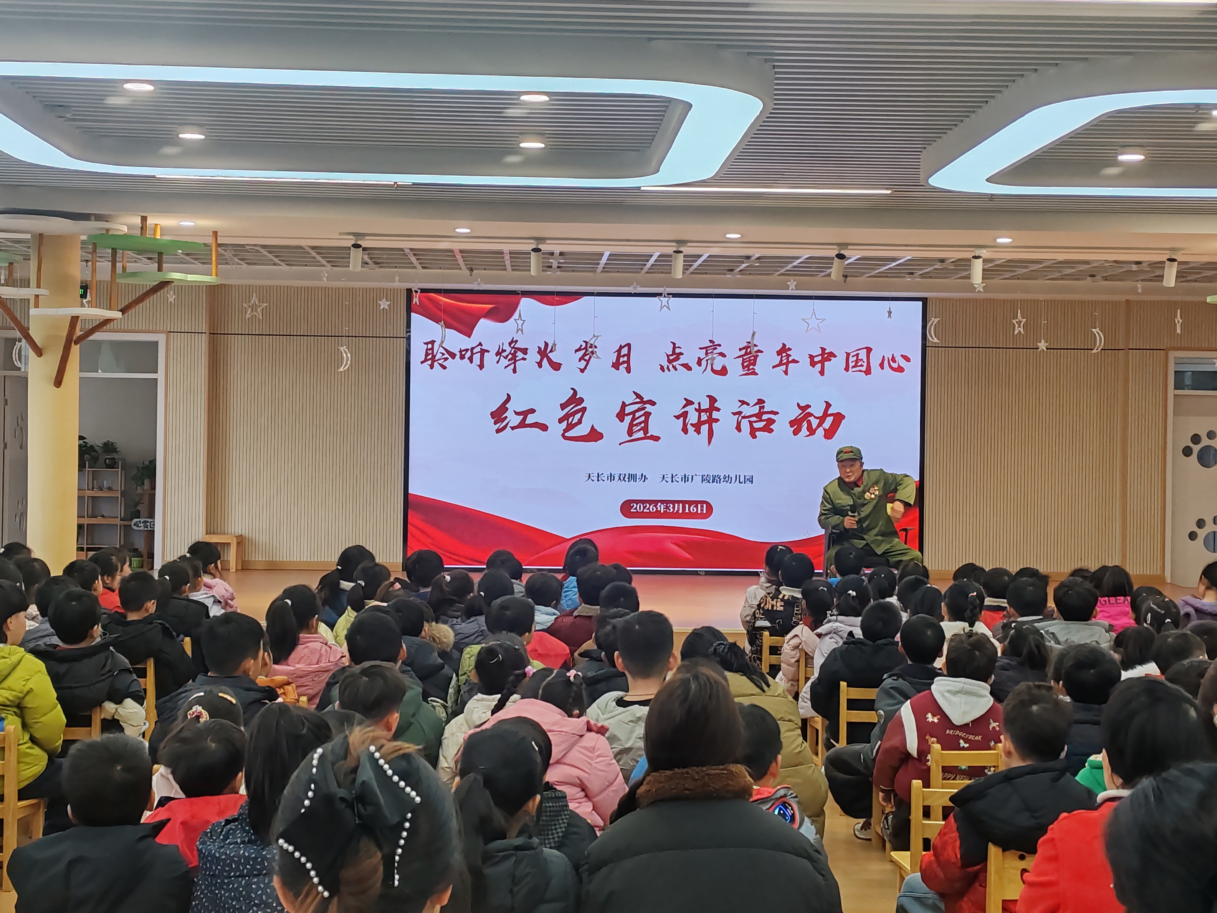 3月16日,天长市双拥办联合市广陵路幼儿园,组织“聆听烽火岁月,点亮童年中国心”红色宣讲活动,通过“故事+亲历”的双重叙事,为幼儿们开启了一堂生动而深刻的国防教育启蒙课。