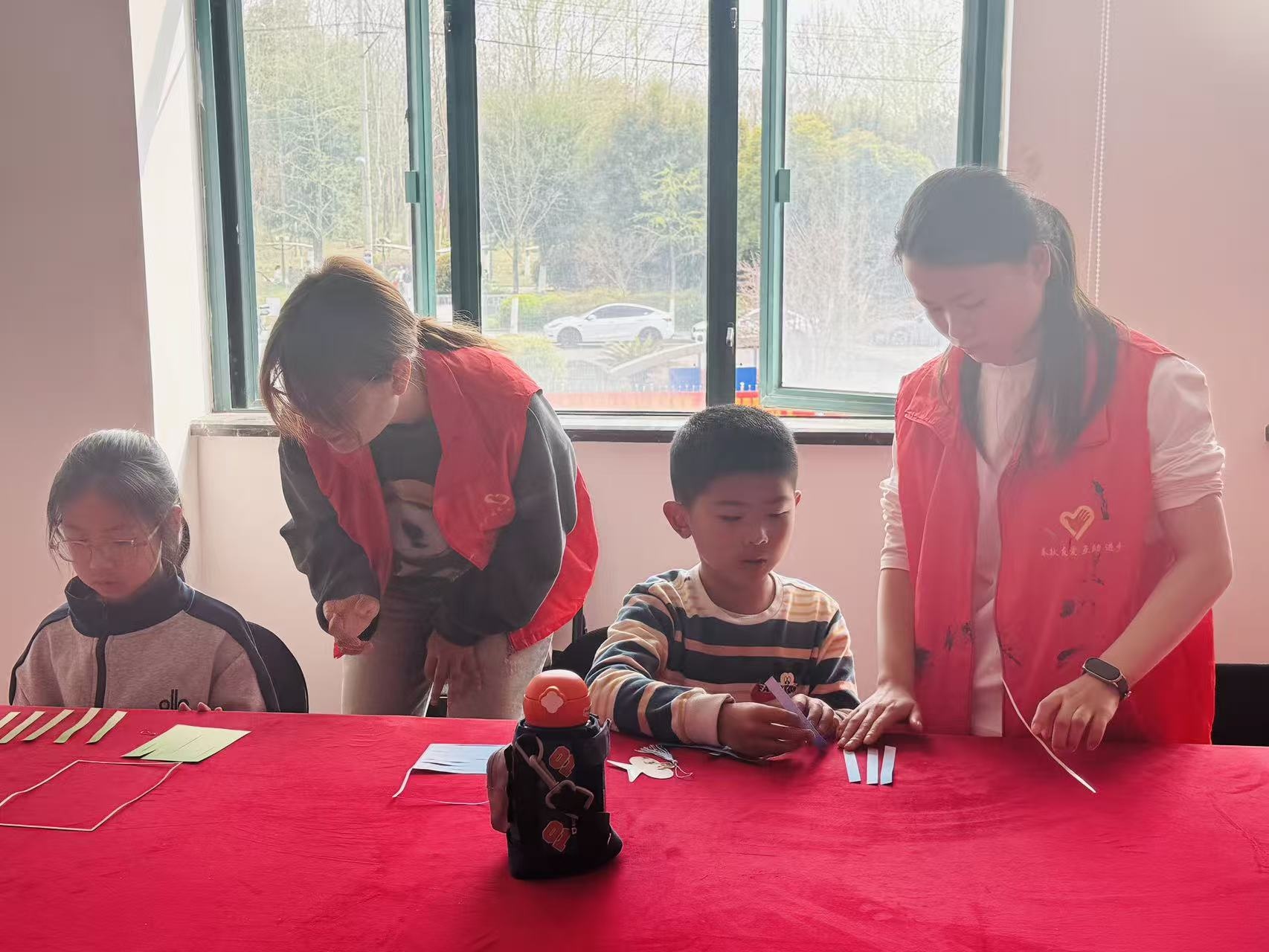 制作中,孩子们专注投入,遇到编织难题主动向志愿者和同伴请教,志愿者一对一纠正手法、调整细节,现场氛围温馨有序。约一个小时后,一个个承载着思念与匠心的纸编挂饰相继完成,孩子们捧着亲手制作的作品,脸上洋溢着满满的成就感。