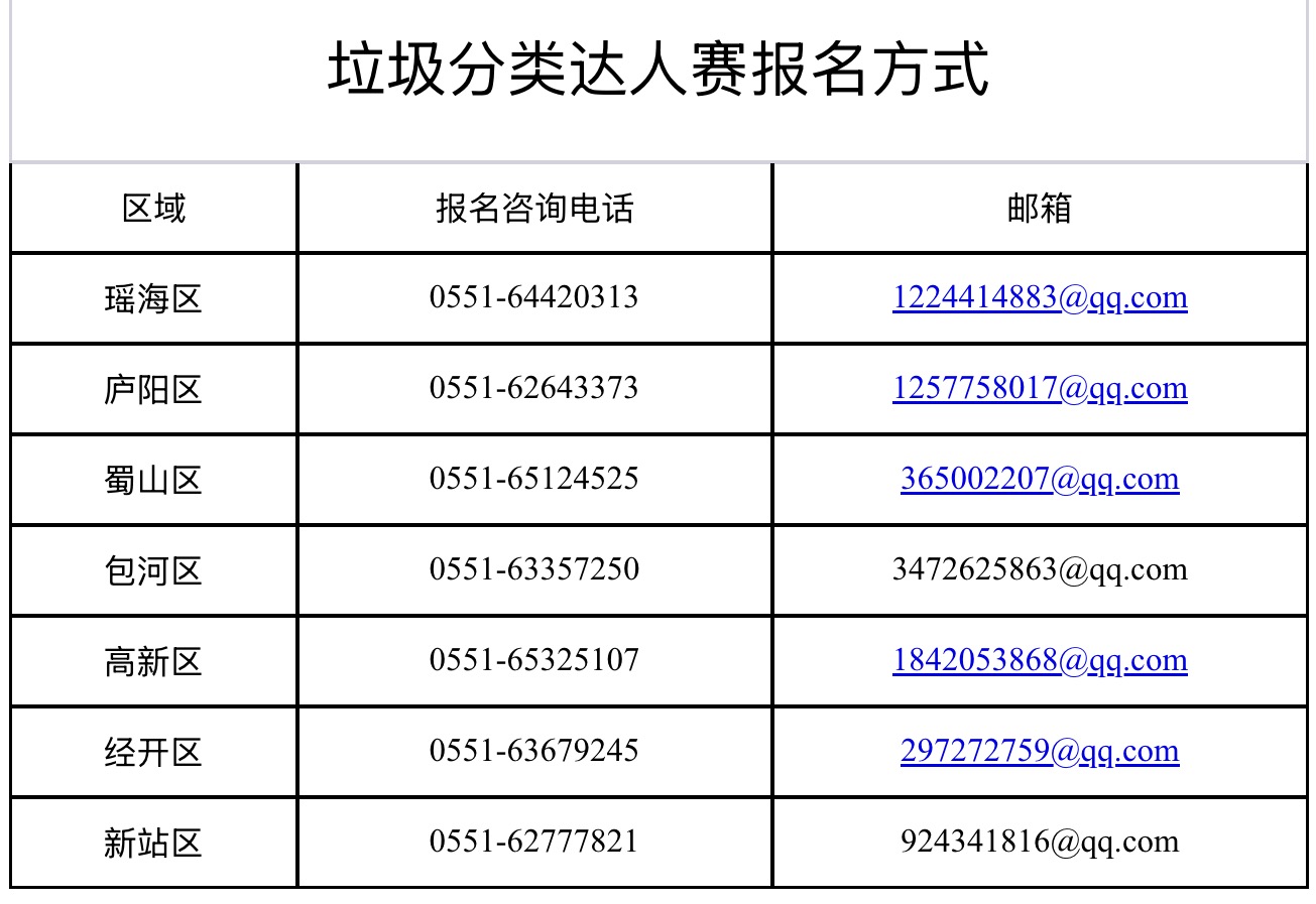 “合肥客运·徽运环境”合肥市“垃圾分类齐参与·绿色文明进万家”达人评选活动火热进行中,等您来报名!如有意向,可拨打以上任意电话咨询,就近就便选择区域进行报名。(方露 何磊明)