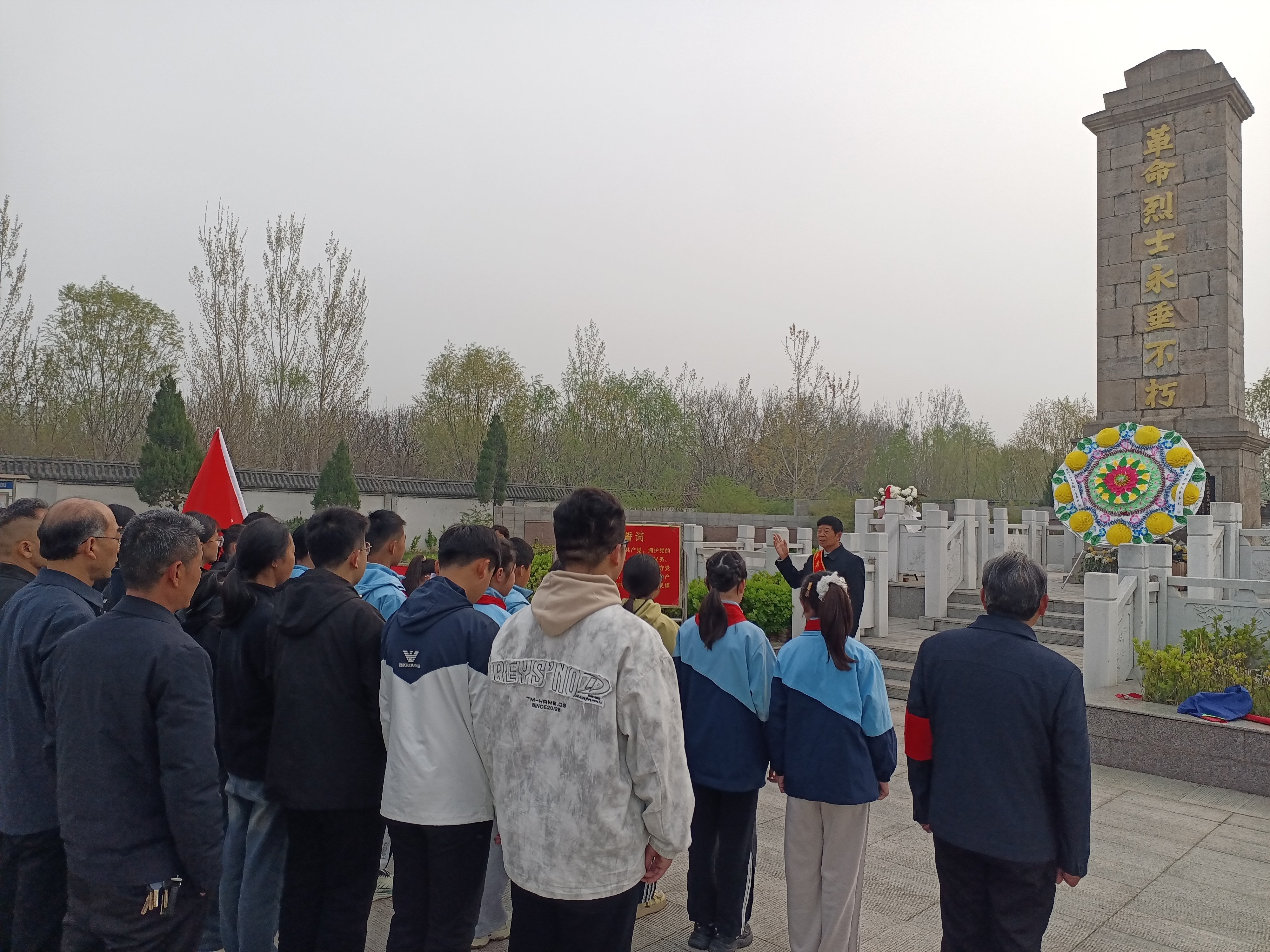 烈山区杨庄街道退役军人服务站组织退役军人代表与在校学生共同走进烈士陵园,开展联合祭扫。退役军人与青少年并肩而立,共同默哀致敬、敬献鲜花,在庄严肃穆的氛围中接受爱国主义教育。通过老兵与少年共同缅怀、共同感悟,红色精神得以代代相传、薪火永续。