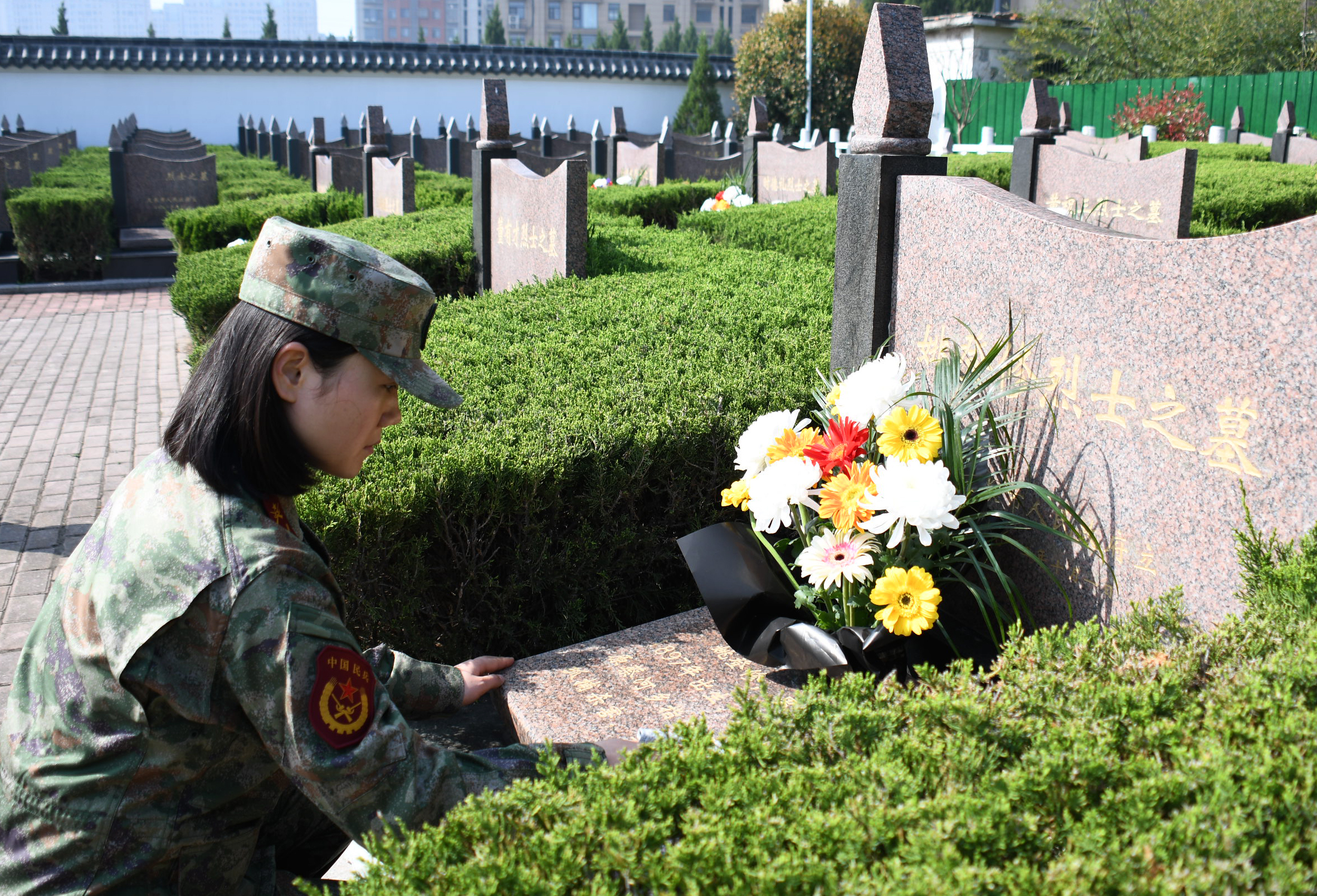 随后,队伍移至慰烈墓区。在这里,参与者们怀着崇敬的心情,俯身细致擦拭每一块烈士墓碑。湿布拂去浮尘,镌刻的姓名与生平渐渐清晰。指尖触碰冰凉的石面,仿佛能穿越时空,感受到那份为信仰燃烧的滚烫初心。