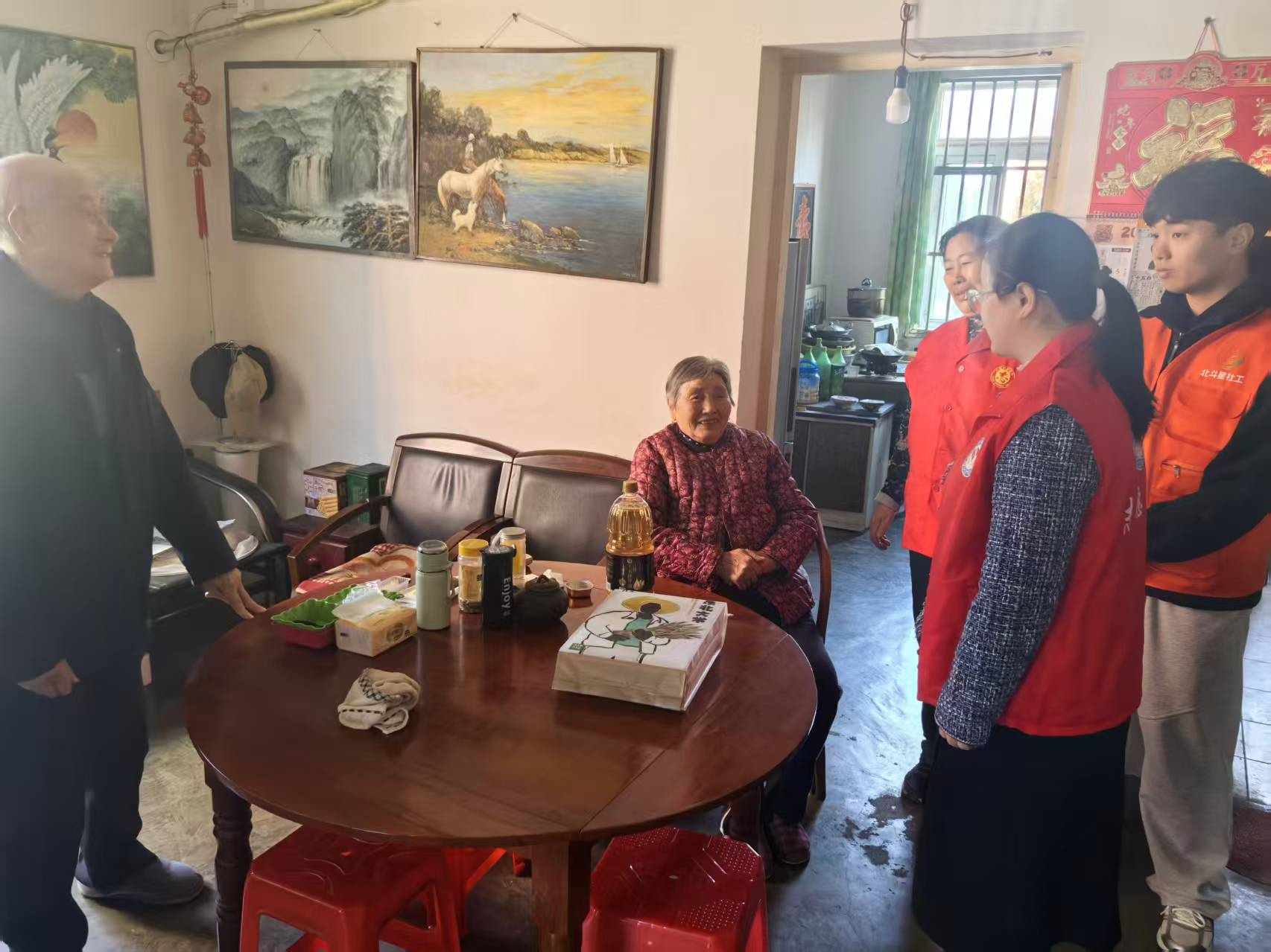 在当天的走访中,工作人员兵分多路,逐户登门。除了送上米、油等慰问物资,志愿者还亲切地与老人拉家常,详细询问他们的身体状况、用药情况和日常起居需求。家住嘉和苑小区12号楼的张奶奶今年82岁,子女常年在外,她感慨地说:“每天拉开窗帘就知道有人在关心我,今天你们还带了东西来看我,心里特别暖。”在独居老人宋大爷家中,志愿者仔细检查了燃气软管是否老化、灶具是否漏气、厨房通风是否良好,并手把手教老人如何正确使用燃气报警器。针对近期气温变化大、春季干燥易上火等特点,工作人员耐心叮嘱老人注意用电用气安全,不要卧床吸烟,遇到任何困难第一时间拨打社区“一键通”电话。