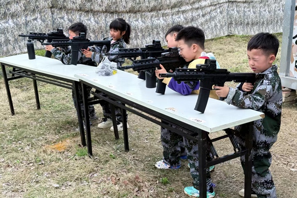 开营仪式后,孩子们在教官带领下前往国防教育营地,开启趣味拓展之旅。教官结合幼儿年龄特点,设计了翻越障碍、钻爬练习、模拟站岗、国防知识互动等安全又具有教育意义的项目,耐心讲解要领、纠正姿势,以鼓励引导孩子们挑战自我、克服困难。训练中,孩子们奋力拼搏、默契配合,即便汗水浸湿衣衫,也无人轻言放弃,展现出不服输的韧劲。训练间隙,教官为孩子们讲述军人保家卫国的故事,结合图片讲解国防知识、展示国防装备,让孩子们明白,岁月静好的背后是军人的坚守,家国情怀不再抽象。