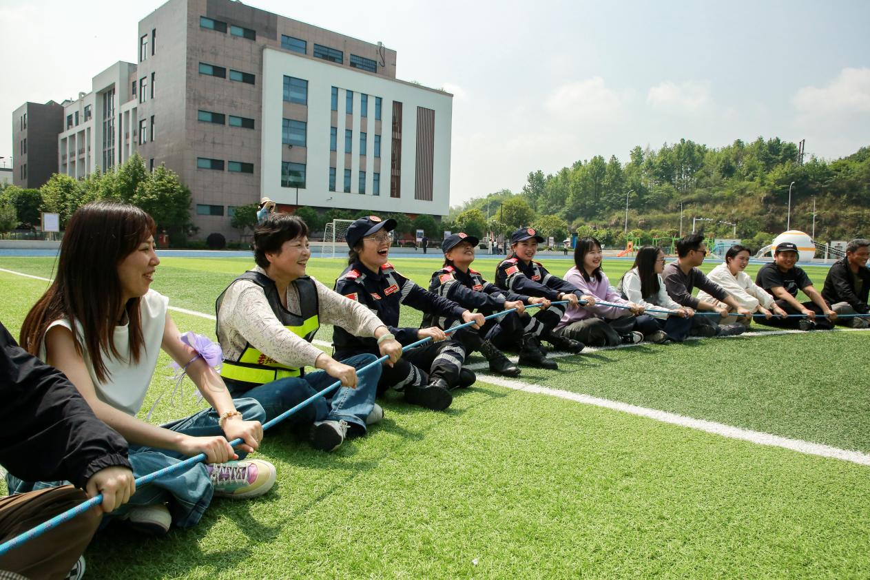 在“欢乐龙舟”环节,大家步调一致、齐心协力;在“趣味赶猪”与“穿大鞋赛跑”环节,队员们灵活冲刺,尽显轻松欢乐;“走绳游戏”则考验着团队的协作默契与耐力。